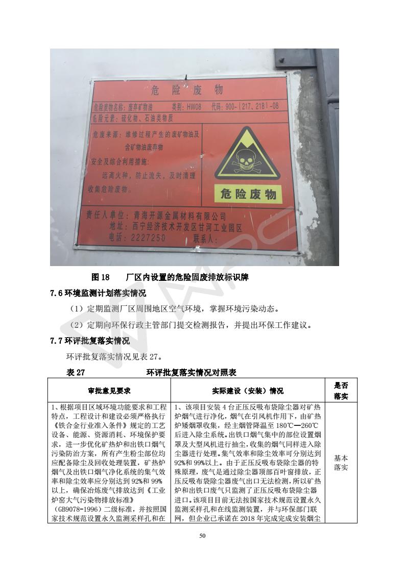 青海開源金屬材料有限公司20萬噸特殊硅鐵生產(chǎn)基地建設(shè)項目(一期工程)竣工環(huán)境保護驗收報告書會后修改20180521