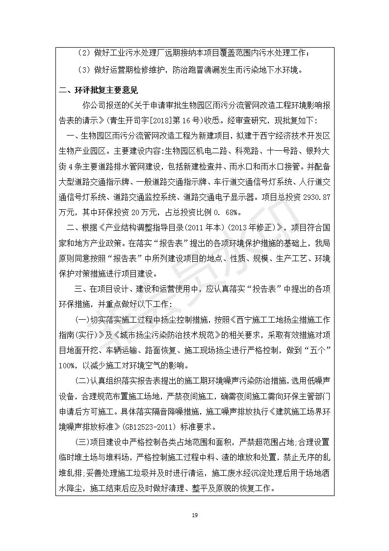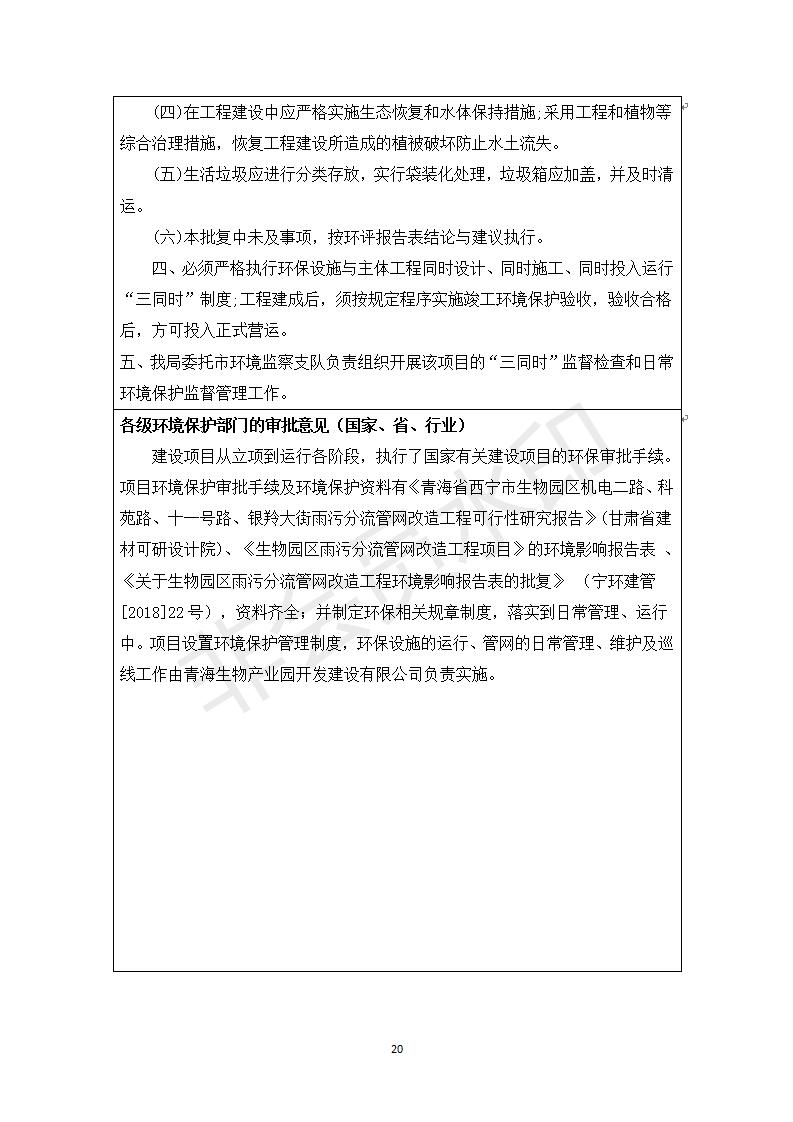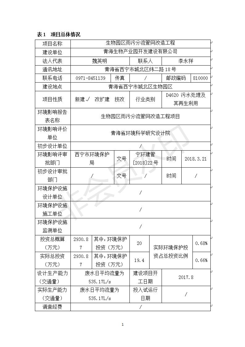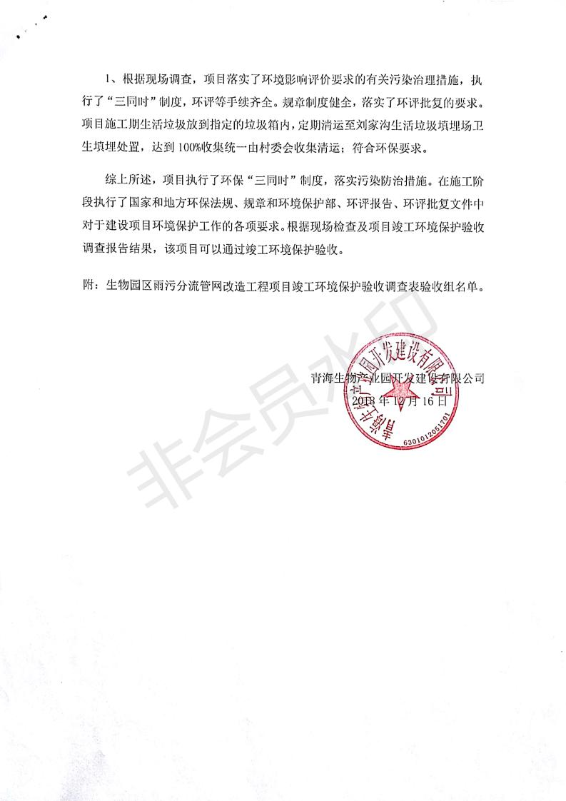 根據(jù)中華人民共和國國務院令第682號《國務院關于修改〈建設項目環(huán)境保護管理條例〉的決定》和《建設項目竣工環(huán)境保護驗收暫行辦法》(國務院令682)現(xiàn)將青海生物產(chǎn)業(yè)園開發(fā)建設有限公司生物園區(qū)雨污分流管網(wǎng)改造工程竣工環(huán)境保護驗收內(nèi)容(包括竣工環(huán)境保護驗收調(diào)查表和驗收意見)公示如下。