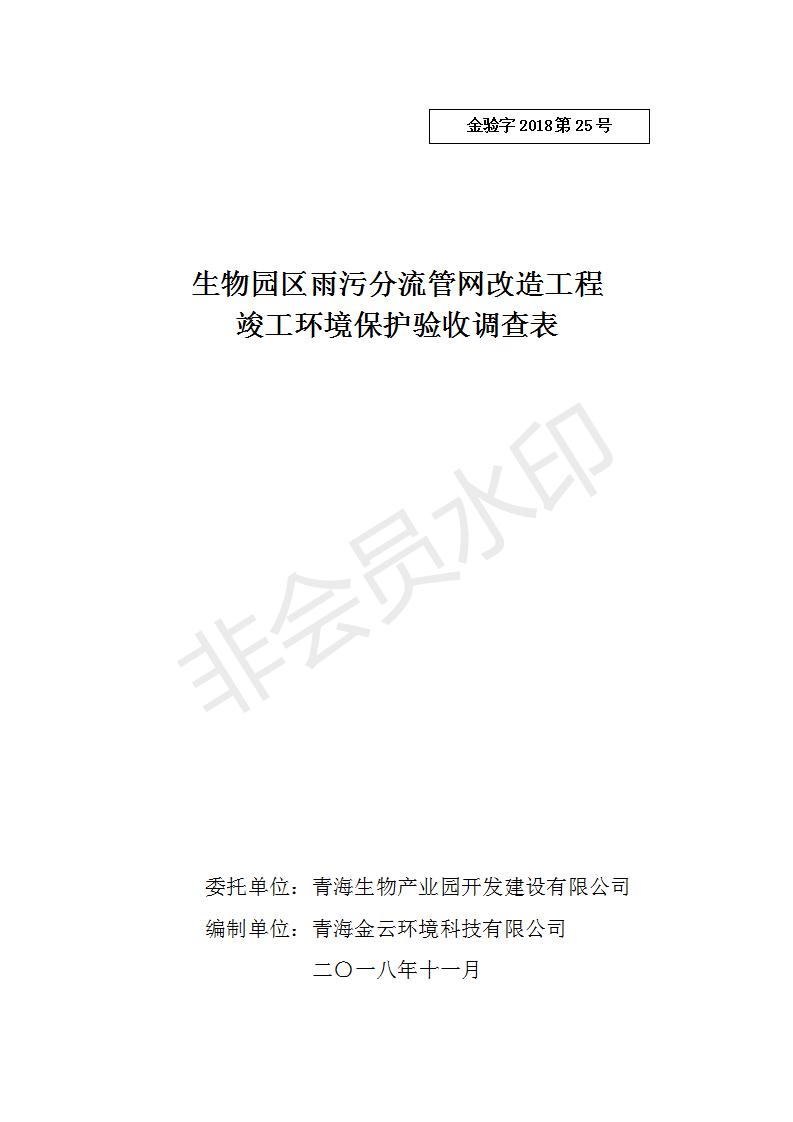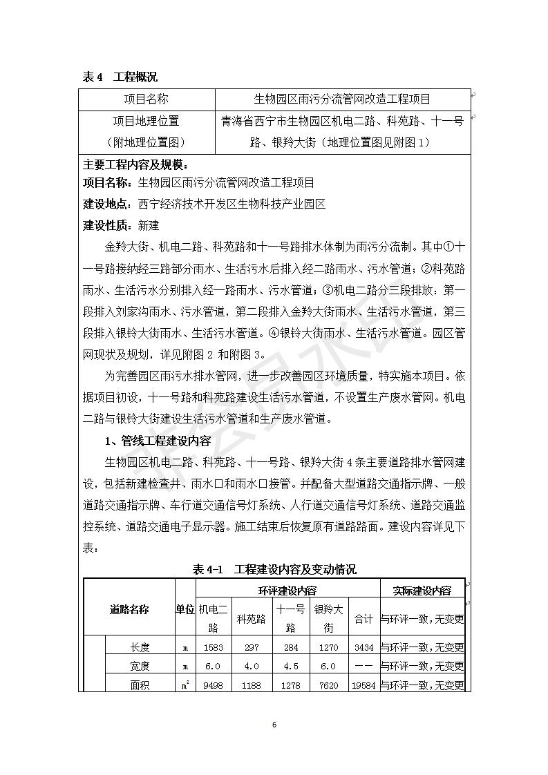 一、項目名稱:生物園區(qū)雨污分流管網(wǎng)改造工程竣工環(huán)境保護驗收調(diào)查報告表