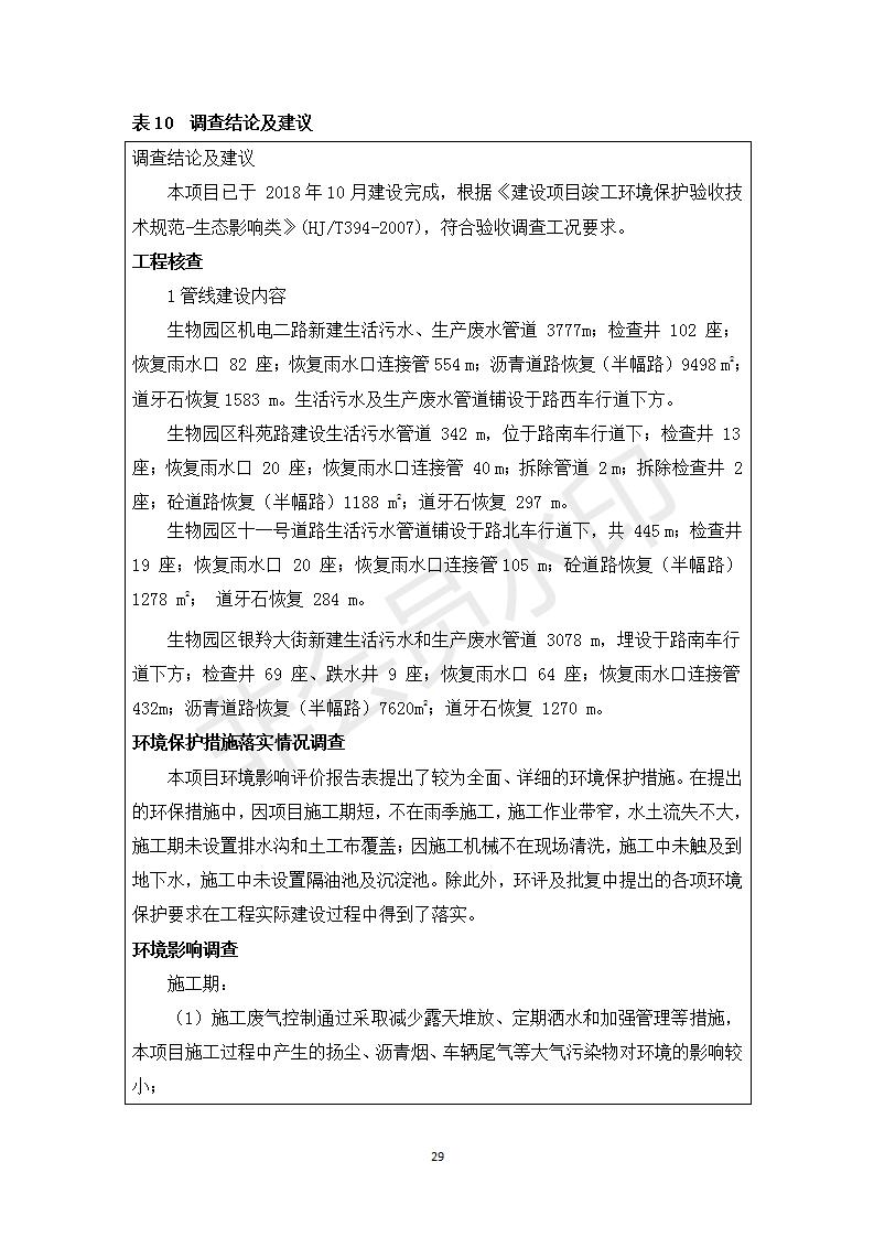生物園區(qū)雨污分流管網(wǎng)改造工程竣工環(huán)境保護驗收調(diào)查表 公示