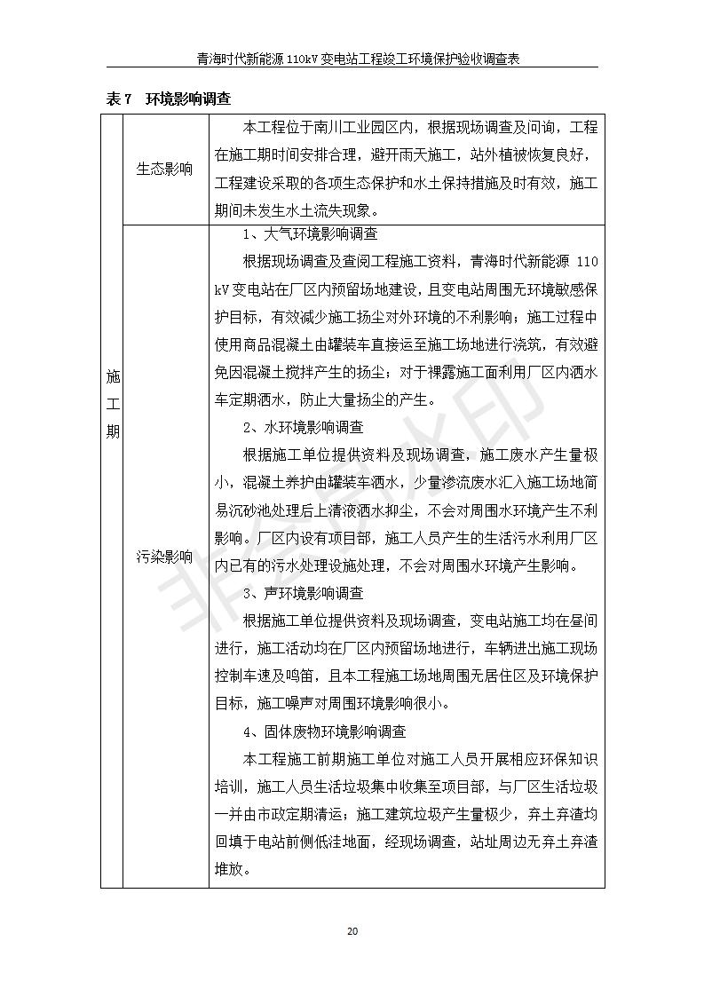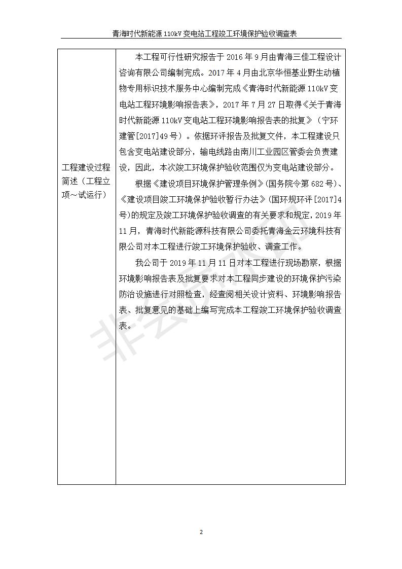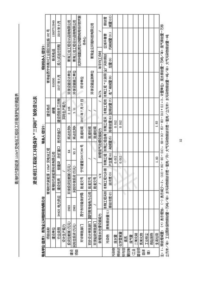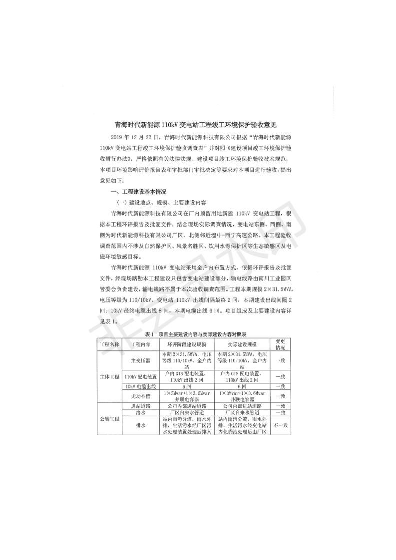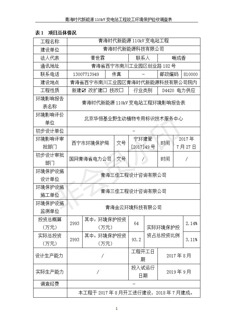 青海時(shí)代新能源110kV變電站工程竣工環(huán)境保護(hù)驗(yàn)收調(diào)查表公示發(fā)布日期:(2020-1-14) 點(diǎn)擊次數(shù):2823 |