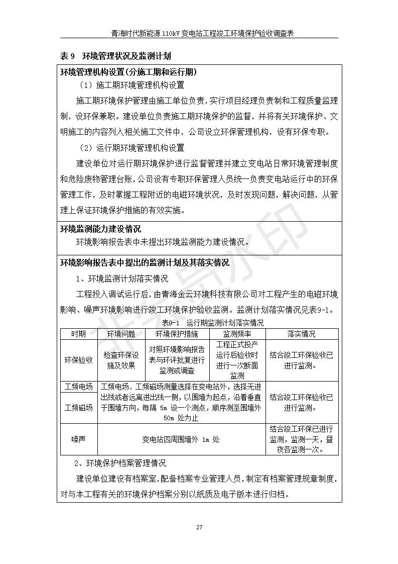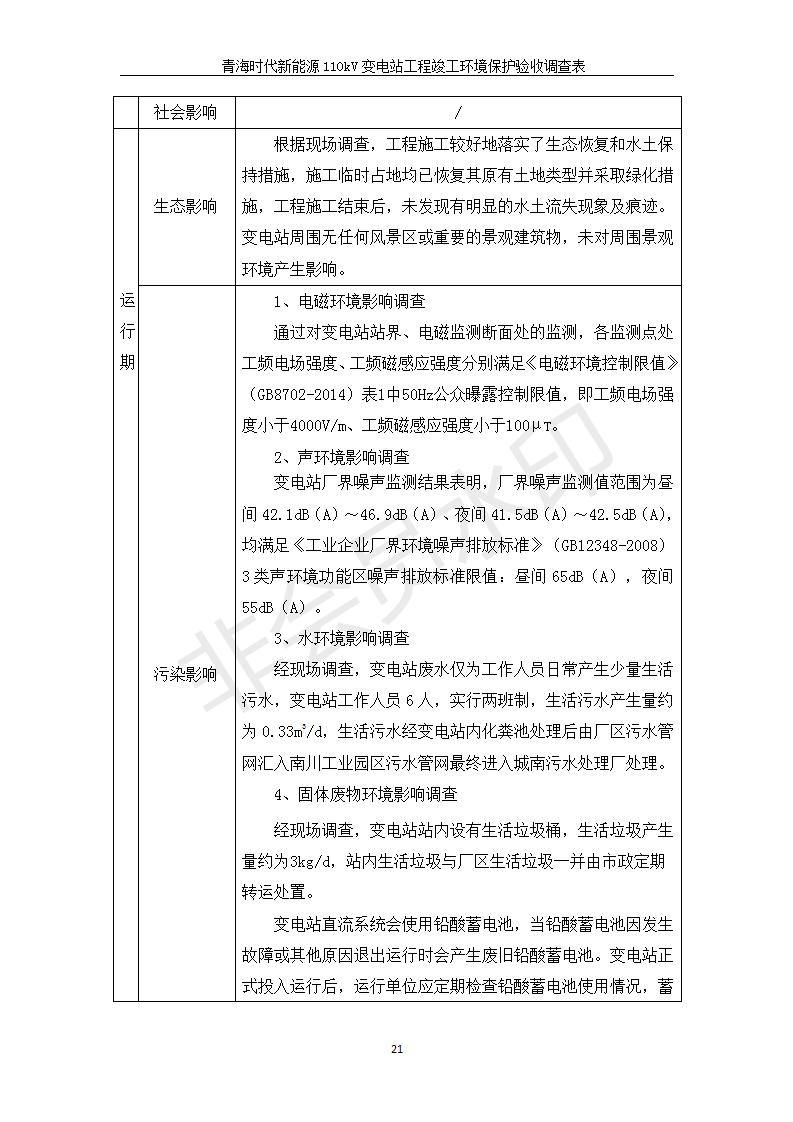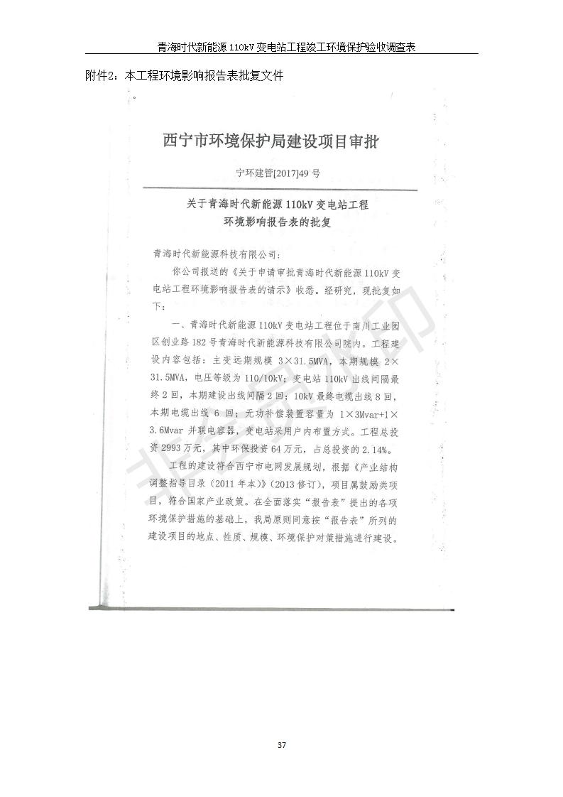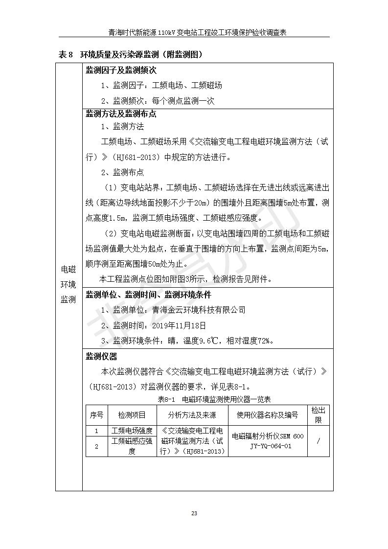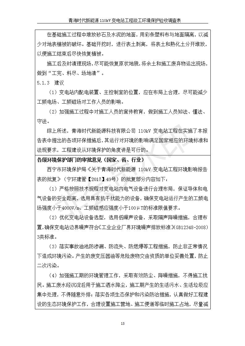 青海時(shí)代新能源110kV變電站工程竣工環(huán)境保護(hù)驗(yàn)收調(diào)查表公示發(fā)布日期:(2020-1-14) 點(diǎn)擊次數(shù):2823 |