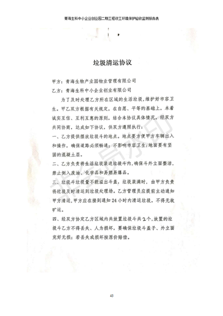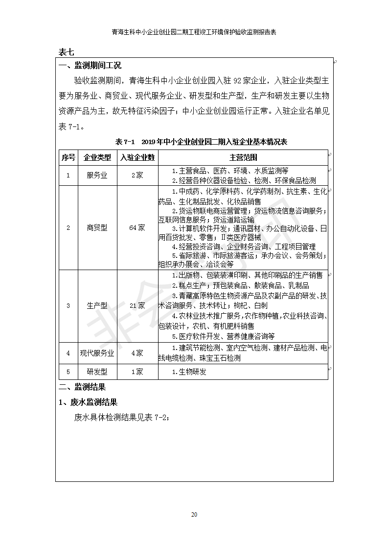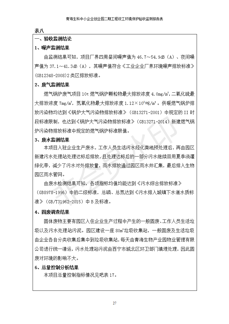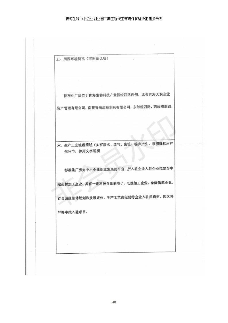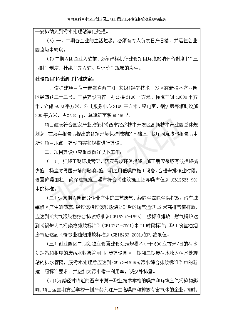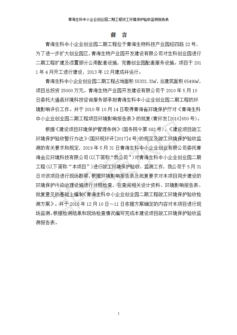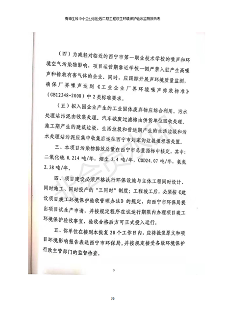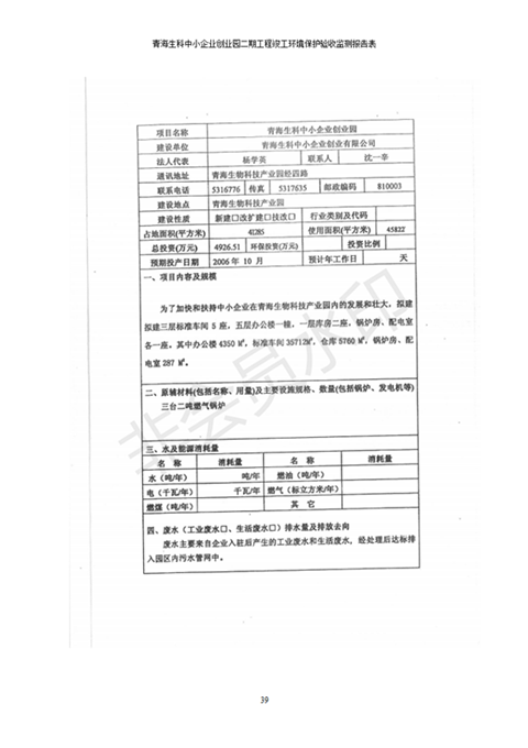 據(jù)中華人民共和國國務(wù)院令第682號《國務(wù)院關(guān)于修改〈建設(shè)項目環(huán)境保護管理條例〉的決定》和《建設(shè)項目竣工環(huán)境保護驗收暫行辦法》(國務(wù)院令682號),青海生科中小企業(yè)創(chuàng)業(yè)園二期工程建設(shè)項目(包括竣工環(huán)境保護驗收監(jiān)測報告表和驗收意見)公示如下。 一、項目名稱:青海生科中小企業(yè)創(chuàng)業(yè)園二期工程建設(shè)項目 二、地點:西寧市生物園區(qū)經(jīng)四路26號 五、聯(lián)系人:張憲周 六、聯(lián)系電話:13997290897 七、公示時間:二〇二〇年二月三日至二〇二〇年二月二十八日 公示期間,對上述公示內(nèi)容如有異議,請以書面形式反饋,個人須署真實姓名,單位須加蓋公章。