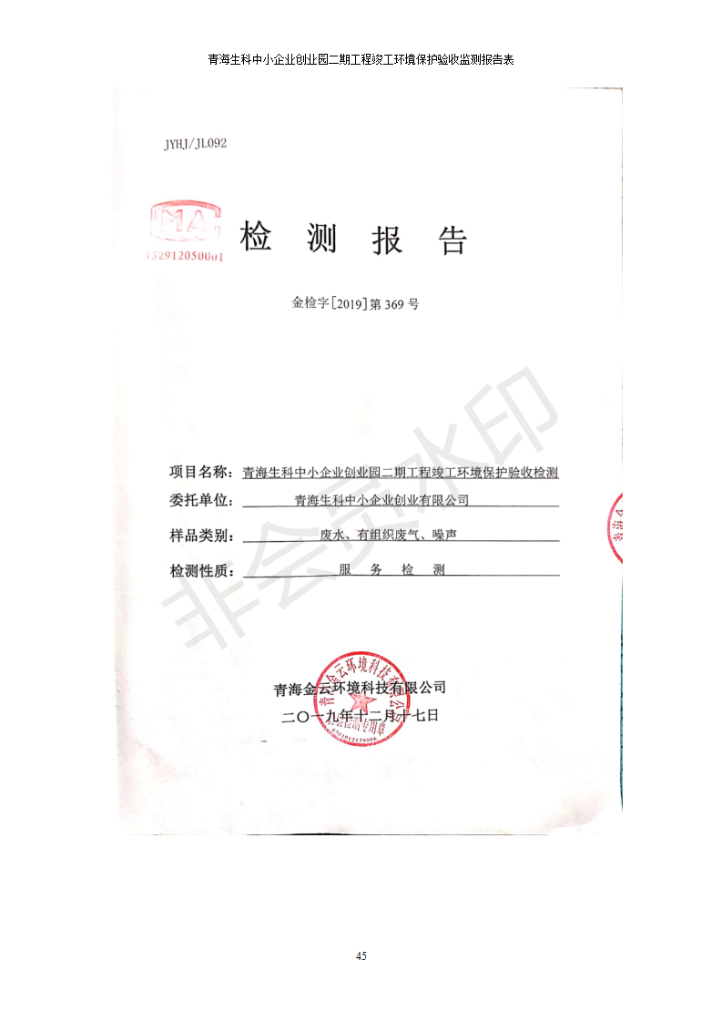 青海生科中小企業(yè)創(chuàng)業(yè)園二期工程建設(shè)項目竣工環(huán)境保護驗收檢測報告表公示發(fā)布日期:(2020-2-1) 點擊次數(shù):2429 |