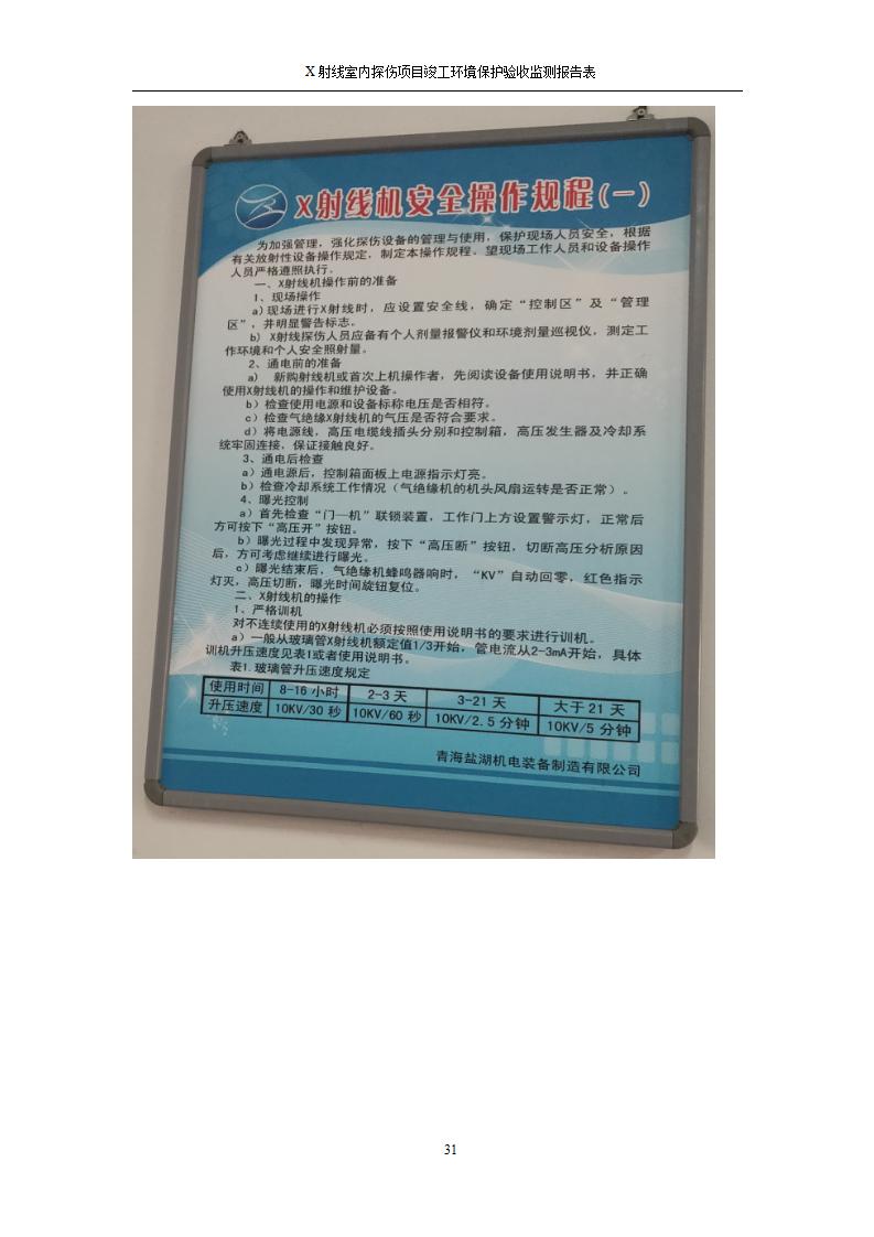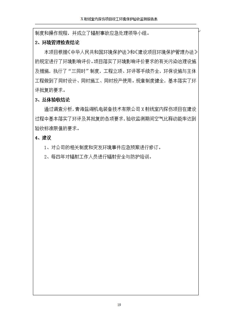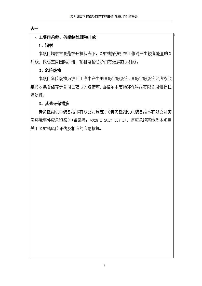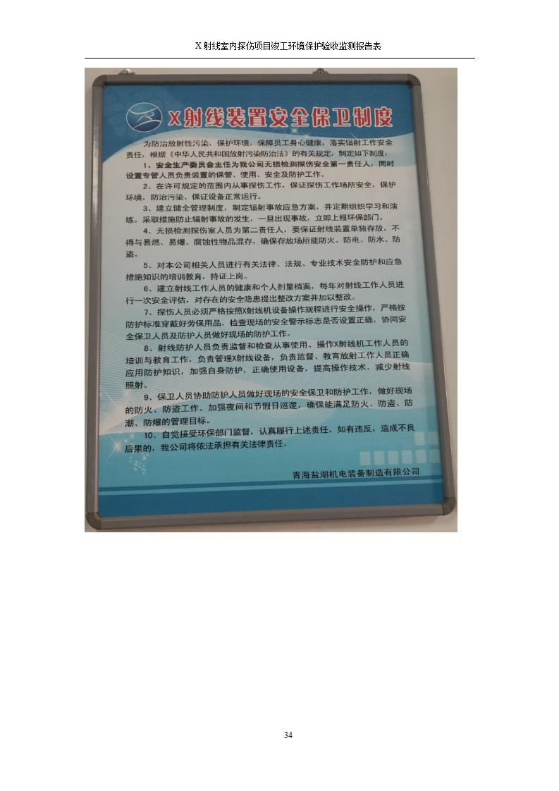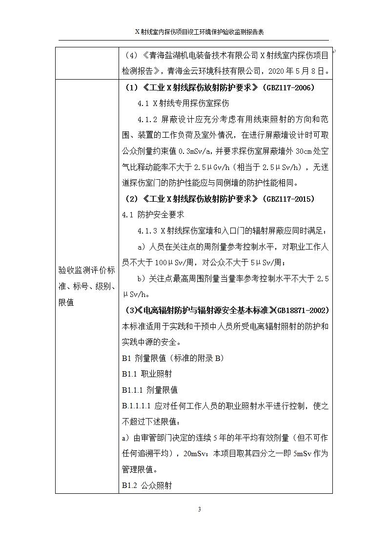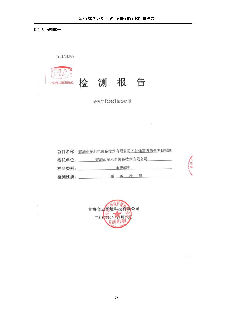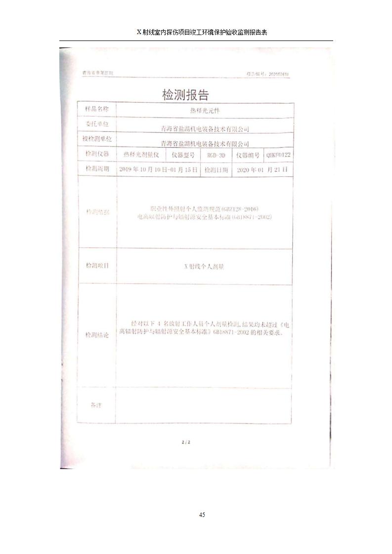 青海鹽湖機電裝備技術有限公司X射線室內探傷項目竣工環(huán)境保護驗收監(jiān)測報告表公示