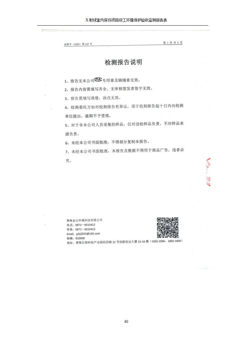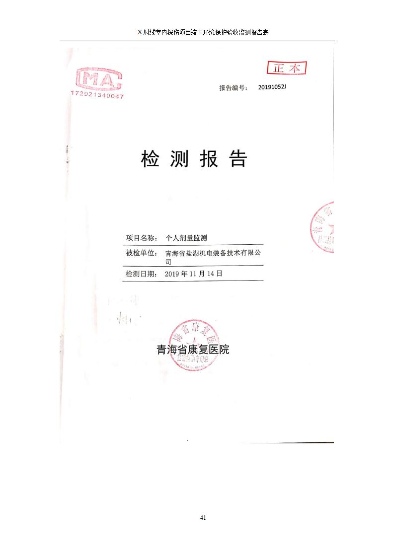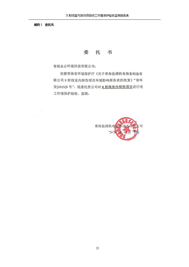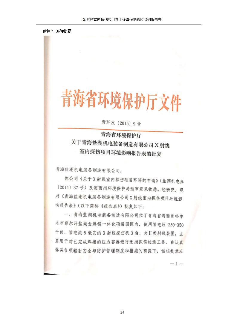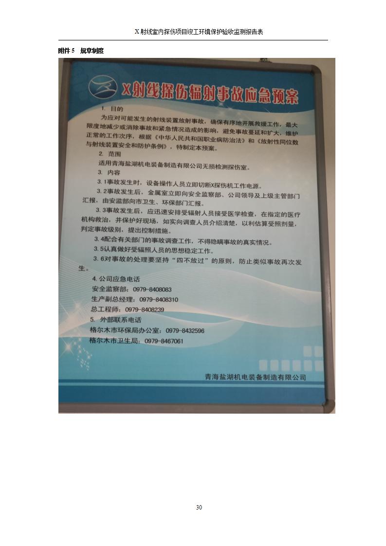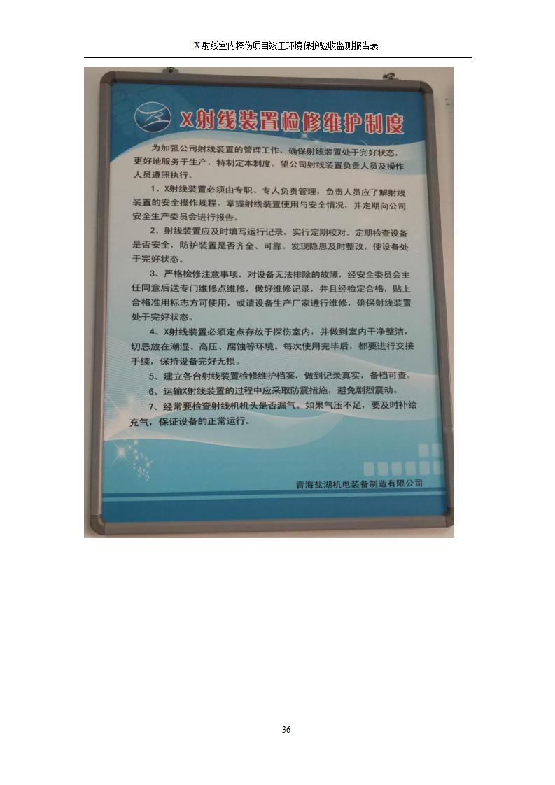 青海鹽湖機電裝備技術有限公司X射線室內探傷項目竣工環(huán)境保護驗收監(jiān)測報告表公示