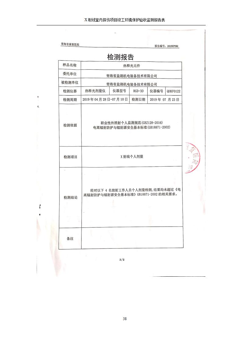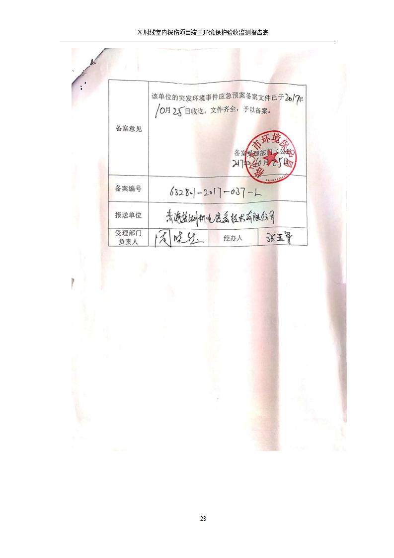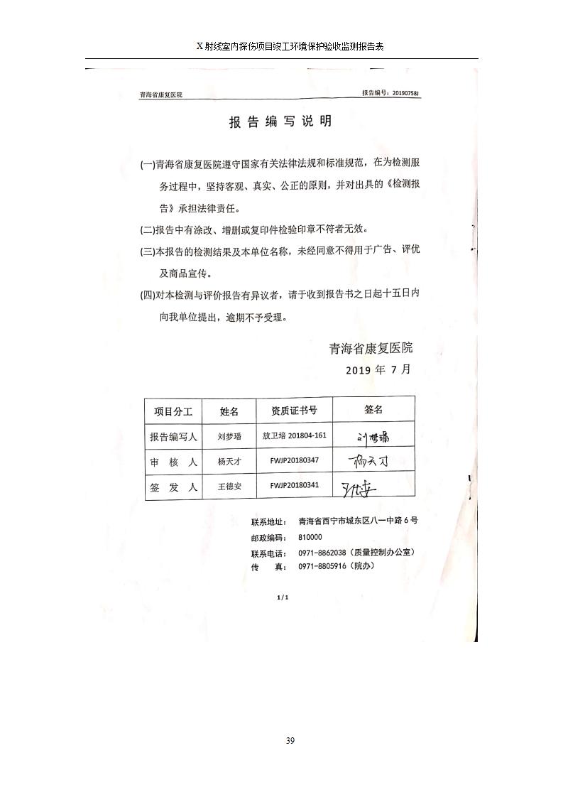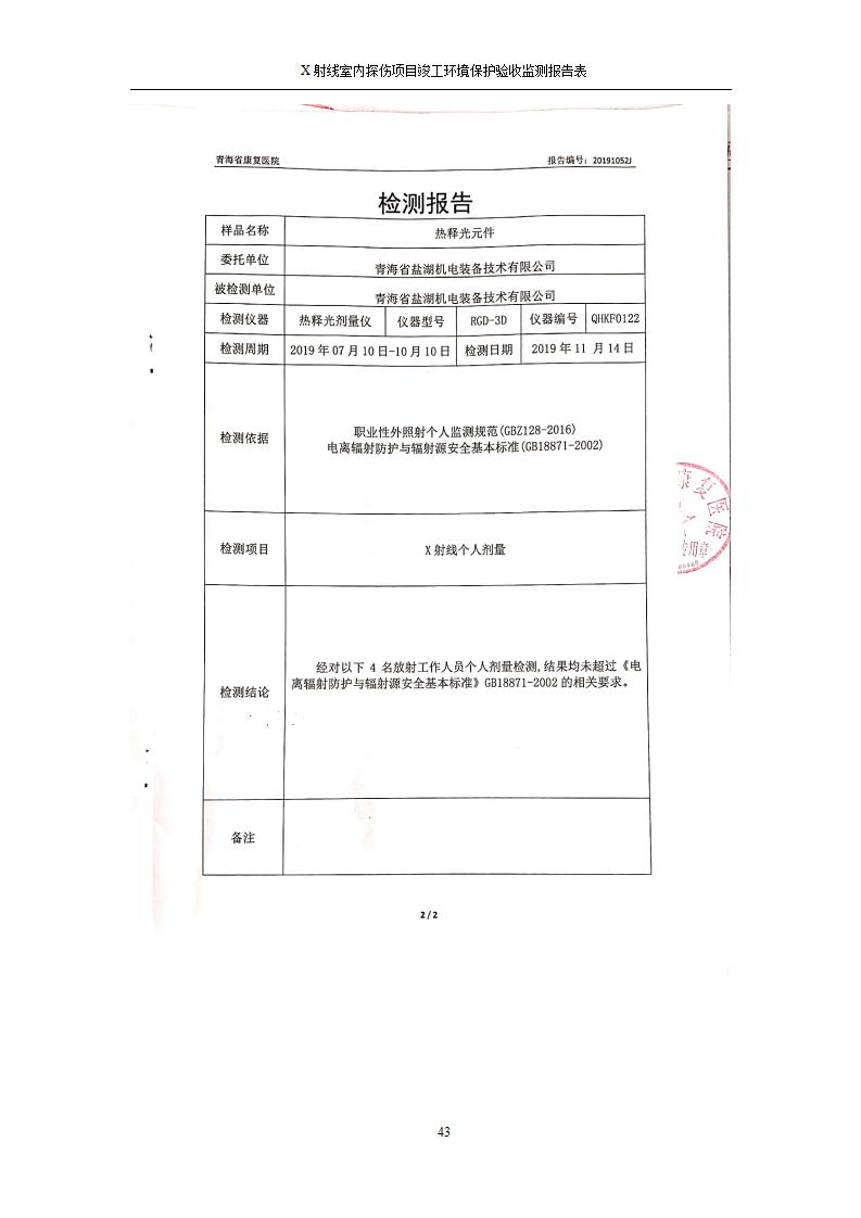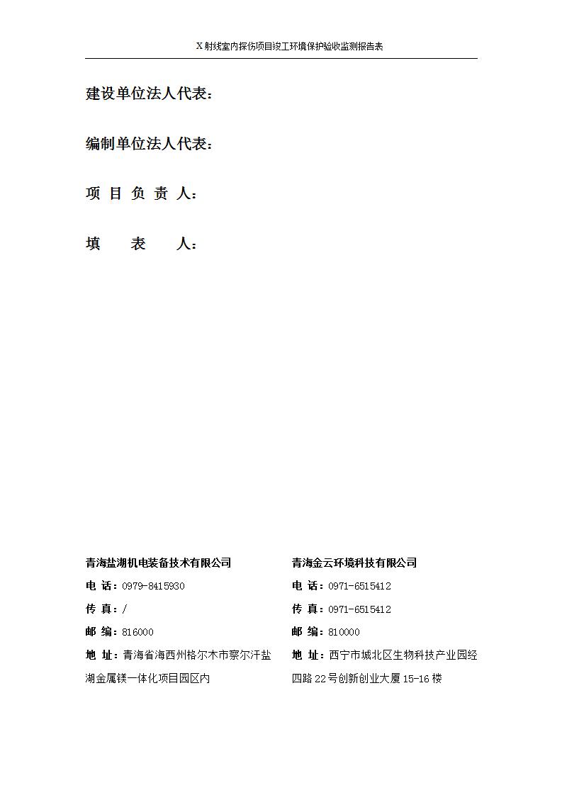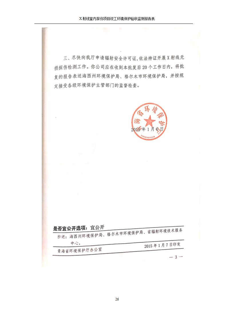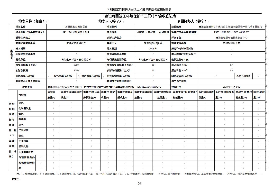 青海鹽湖機電裝備技術有限公司X射線室內探傷項目竣工環(huán)境保護驗收監(jiān)測報告表公示