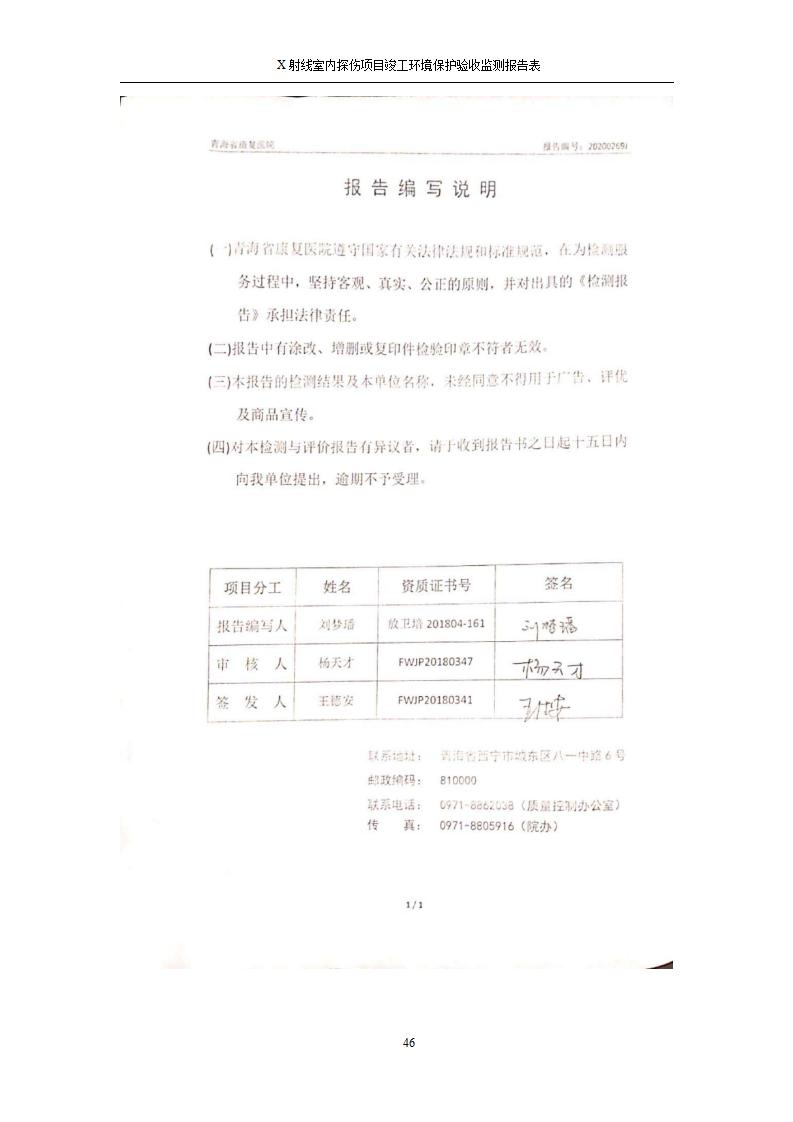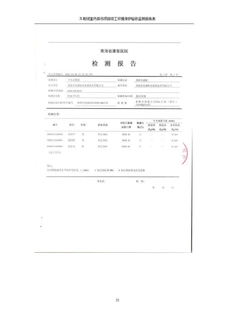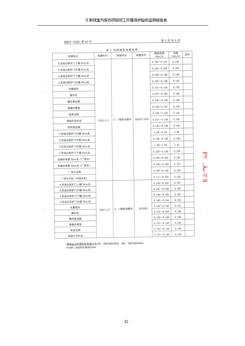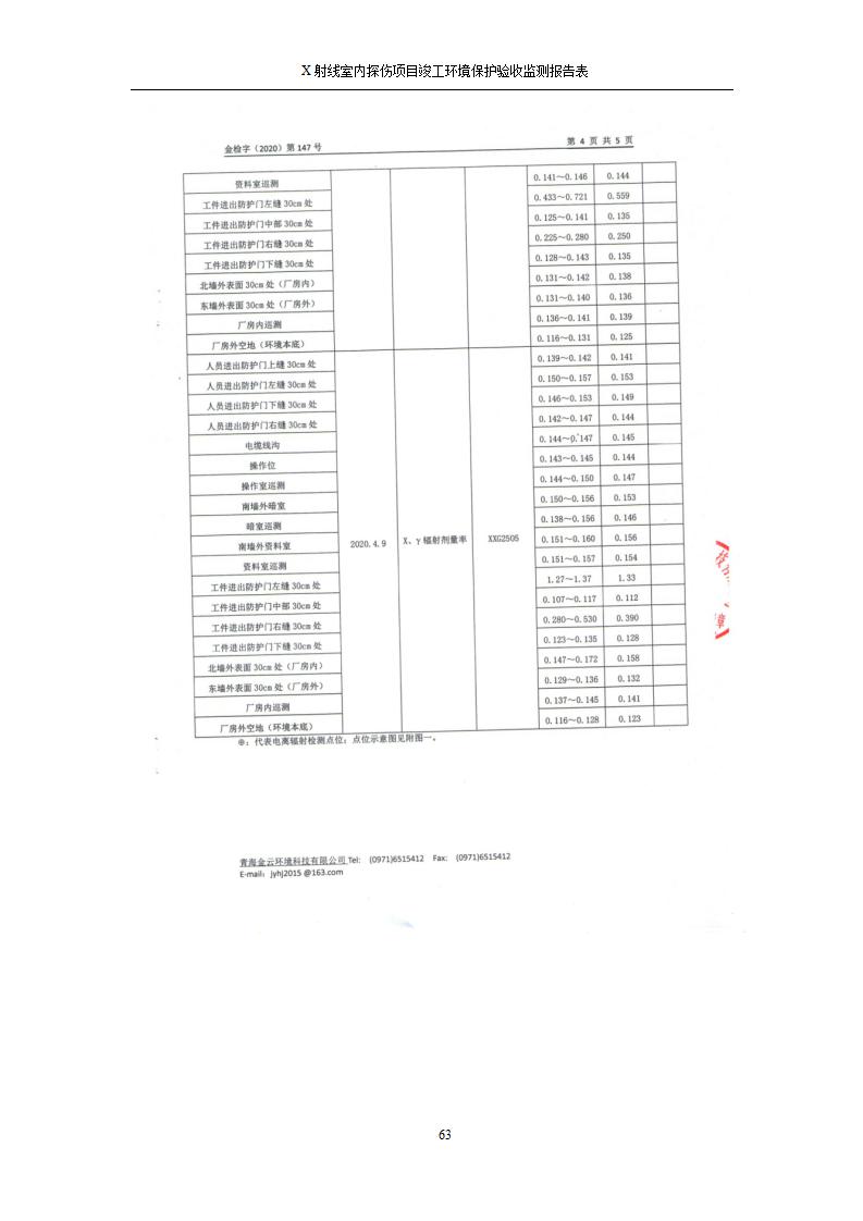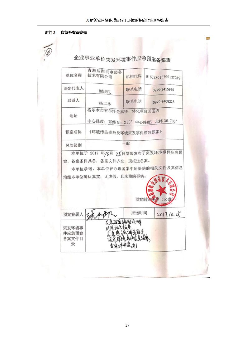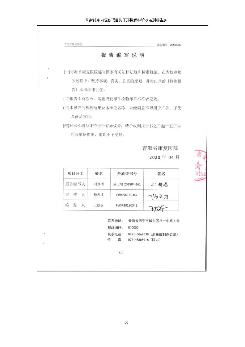 青海鹽湖機電裝備技術有限公司X射線室內探傷項目竣工環(huán)境保護驗收監(jiān)測報告表公示