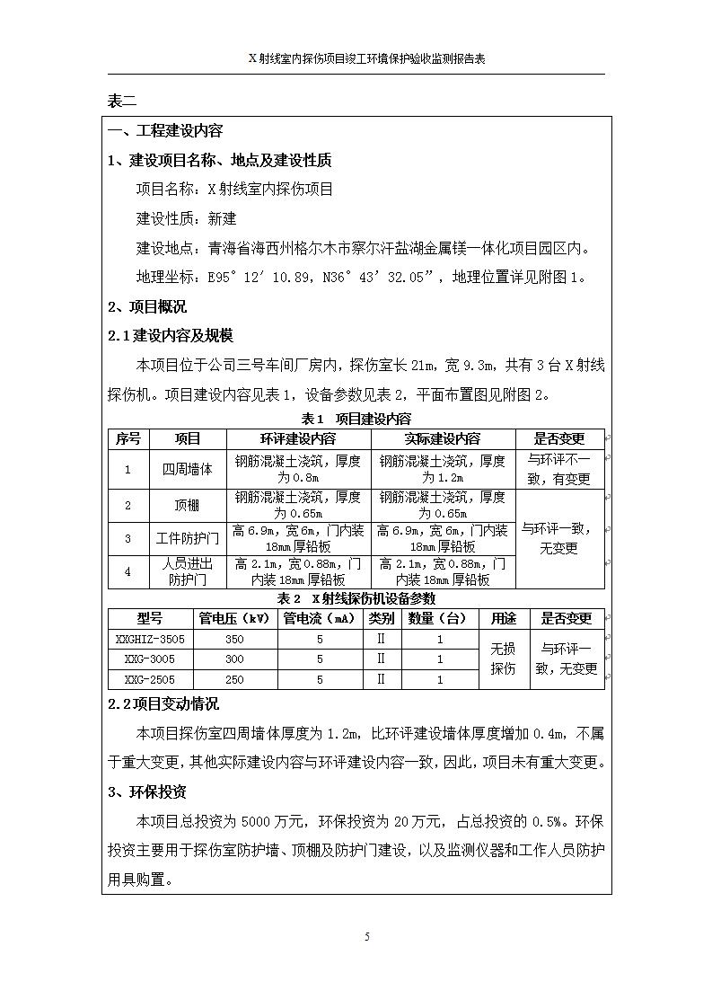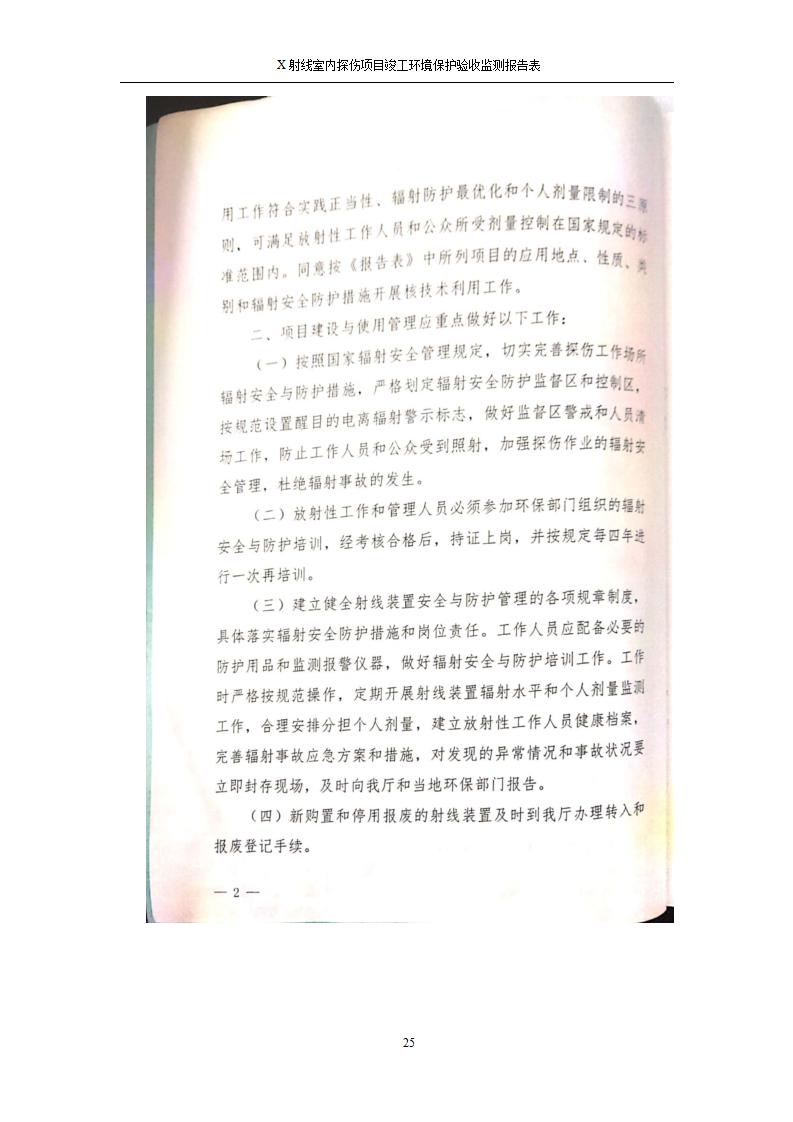 一、項目名稱:X射線室內探傷項目竣工環(huán)境保護驗收監(jiān)測報告表
