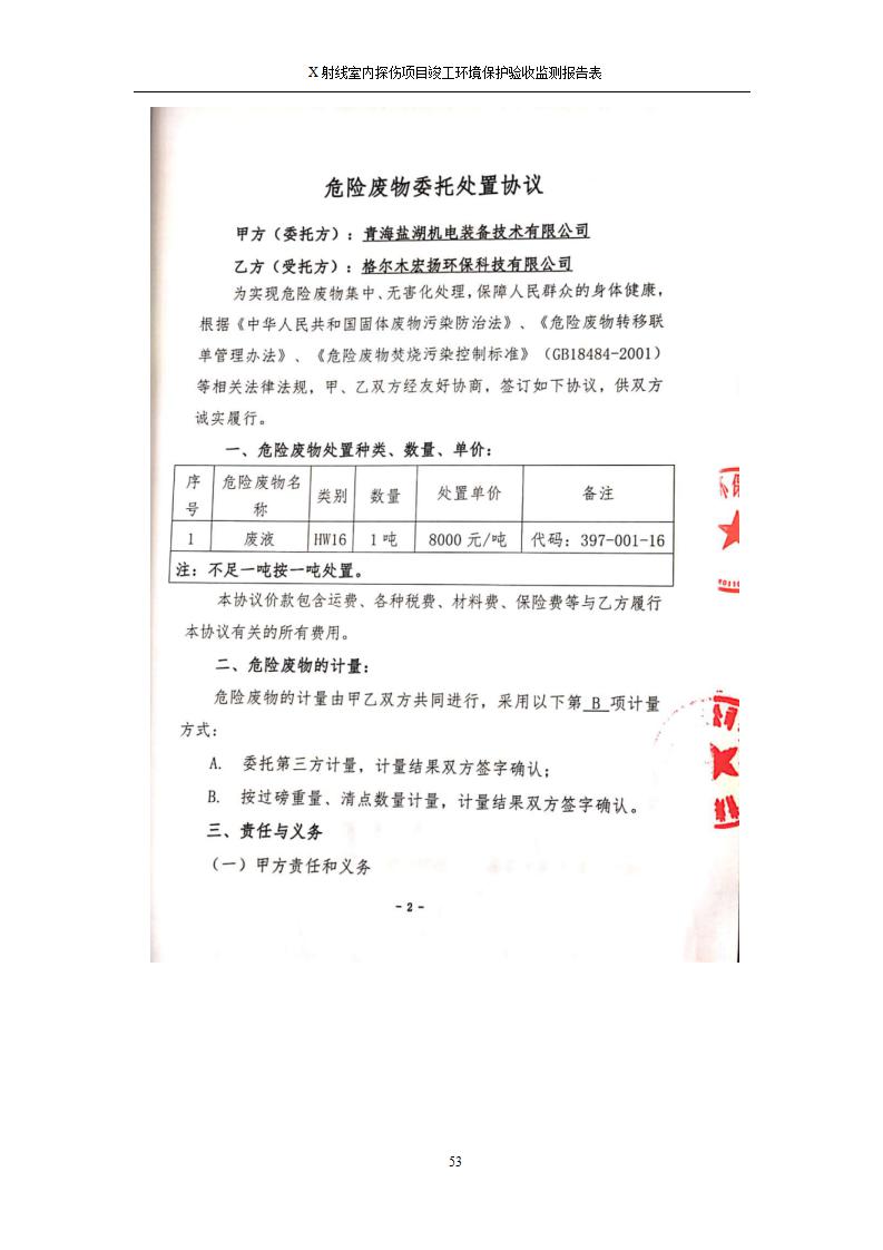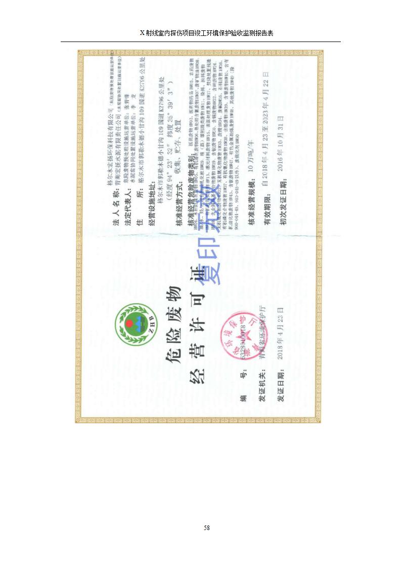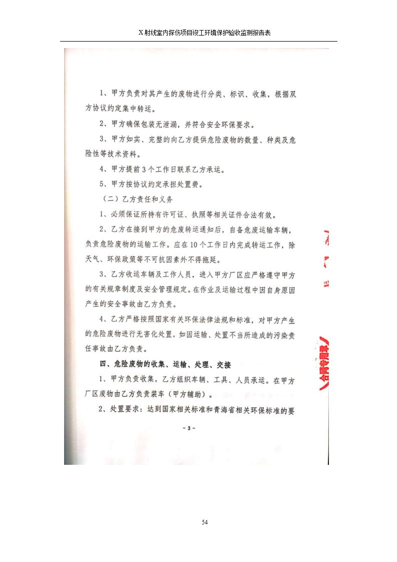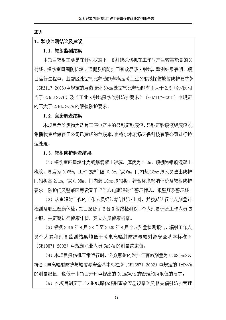 根據(jù)中華人民共和國國務院令第682號《國務院關于修改〈建設項目環(huán)境保護管理條例〉的決定》和《建設項目竣工環(huán)境保護驗收暫行辦法》(國務院令682號),青海鹽湖機電裝備技術有限公司X射線室內探傷項目竣工環(huán)境保護驗收監(jiān)測報告表公示如下。